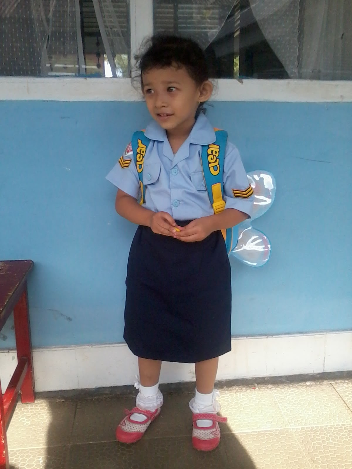 Hari ini adalah hari pertama Cinta sekolah. Hari pertama sekaligus pertama kalinya Cinta sekolah di TK Angkasa. Sekolah yang berlokasi di Tabing berdekatan dengan Bandara lama dan komplek TNI Angkatan Udara. Hari pertama sekolah adalah hari memakai baju seperti anggota TNI Angkatan Udara :-D